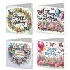 4pcs DIY Flower Butterfly Happy Birthday DIY Diamond Painting Greeting Card for Friends Family Gift【With White Envelope】