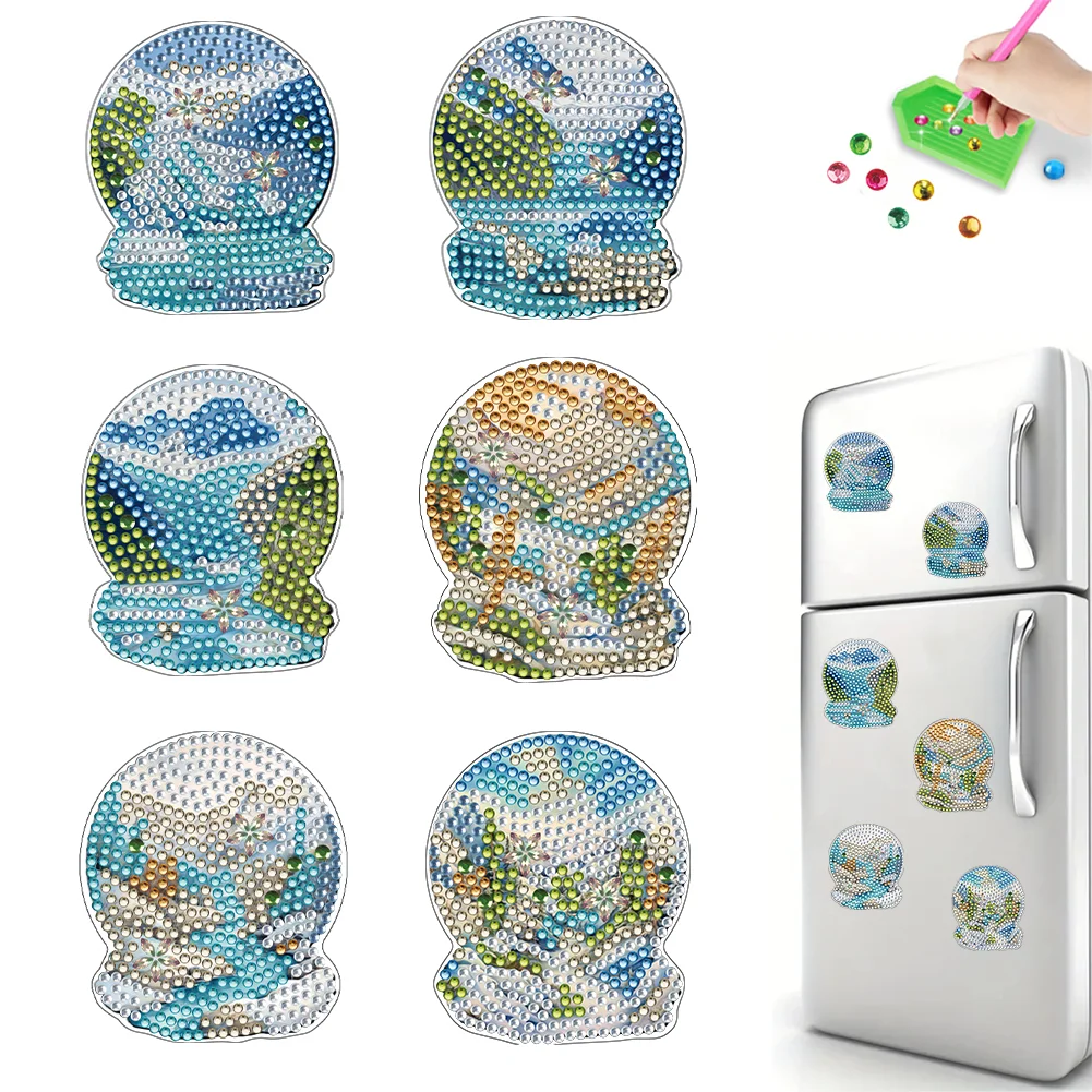 6Pcs River Crystal Ball Diamond Painting Refrigerator Magnets for Home Decor