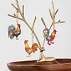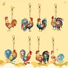 8Pcs DIY Rooster Double Sided Diamond Art Keyring for Home Birthday Party Decor