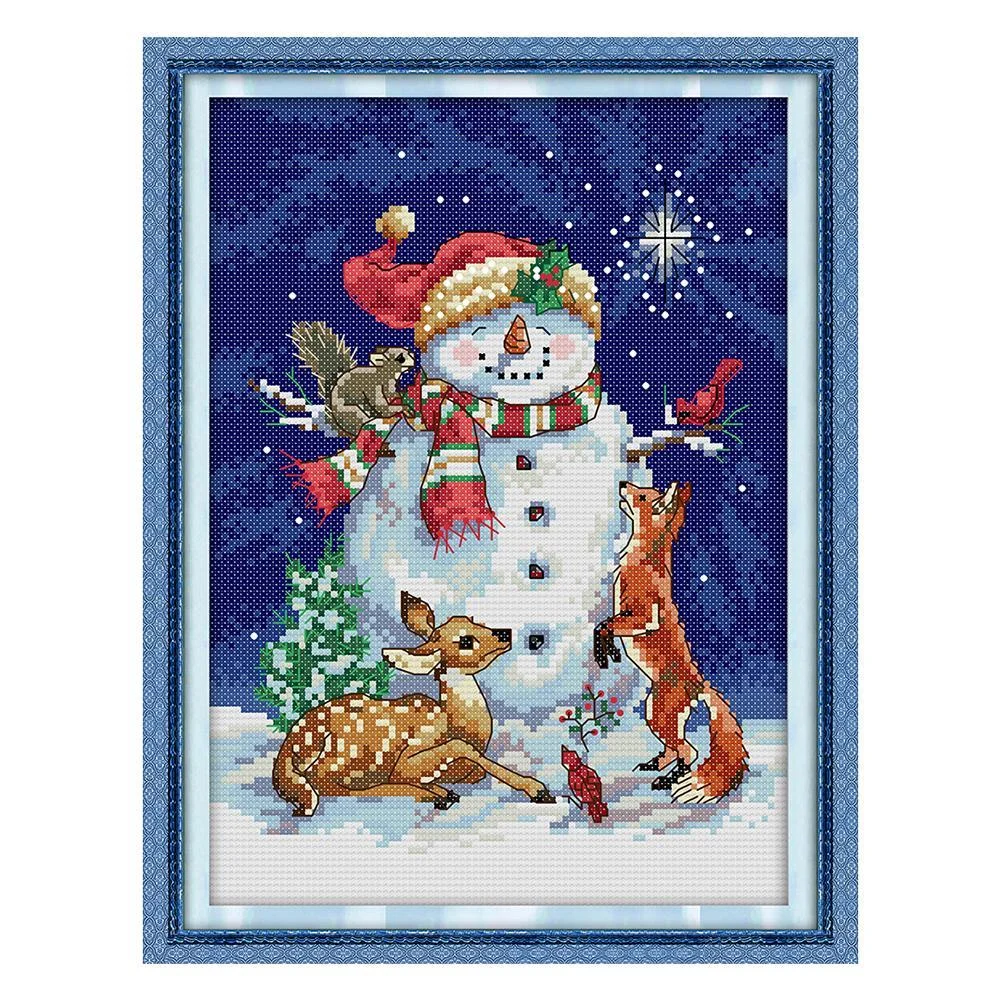 14CT Counted Print DIY Cartoon Snowman Handmade Cross Stitch Artwork Canvas Embroidery Kit Needlework Home Decor Ornaments Craft