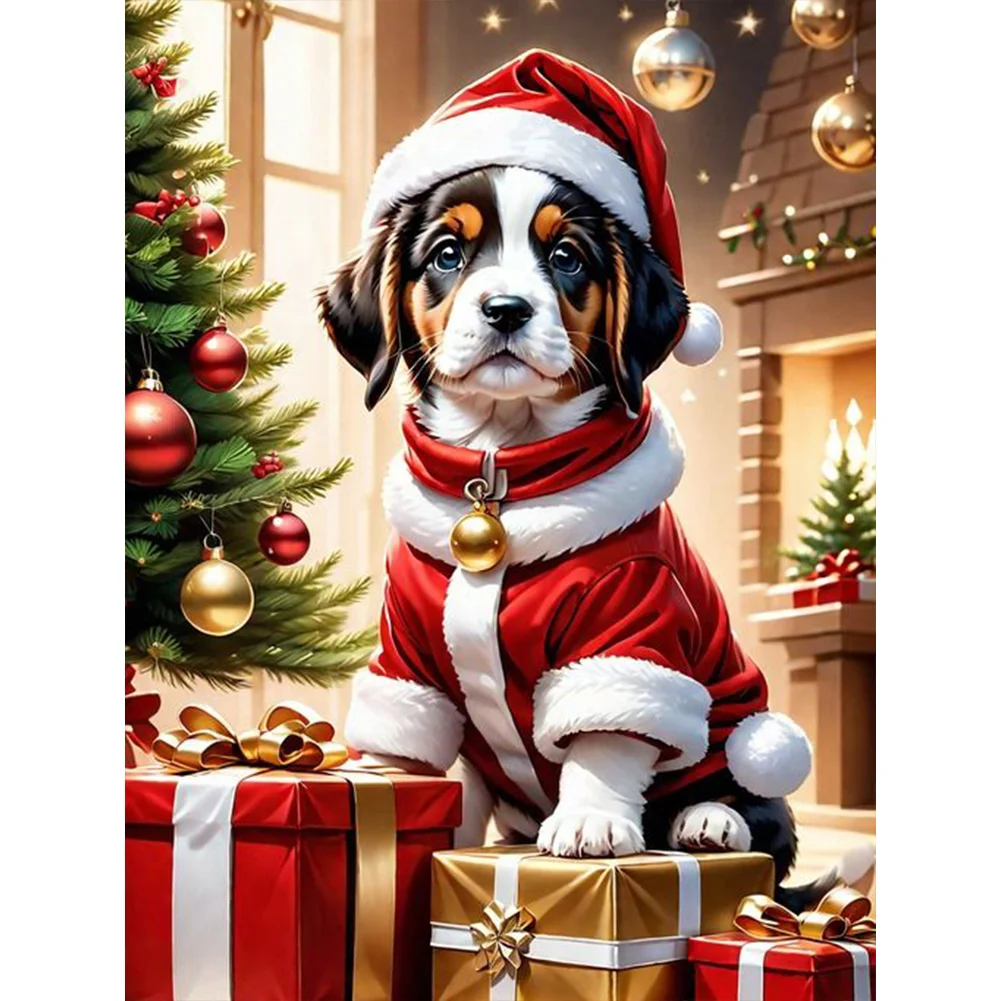 Diamond Painting-5D Full Round Drill Christmas Dog