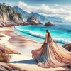 Diamond Painting-5D Full Round Drill-Girl on The Beach