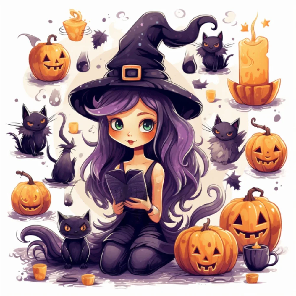 Diamond Painting-5D Full Round Drill Halloween Girl