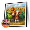 Diamond Painting-5D Full Round Drill Sunflower Field Two Cows