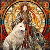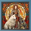 Diamond Painting-5D Partial AB Square Drill-Stained Glass Wolf Angel(Canvas|35*35cm)