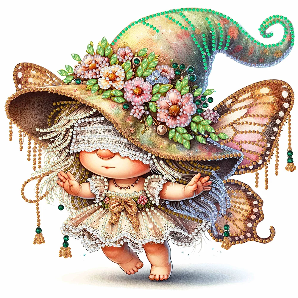 Diamond Painting-DIY Crystal Rhinestone Spring Butterfly Gnome