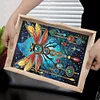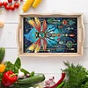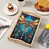 DIY Dragonfly Wooden Diamond Decorative Serving Tray with Handle for Coffee Table