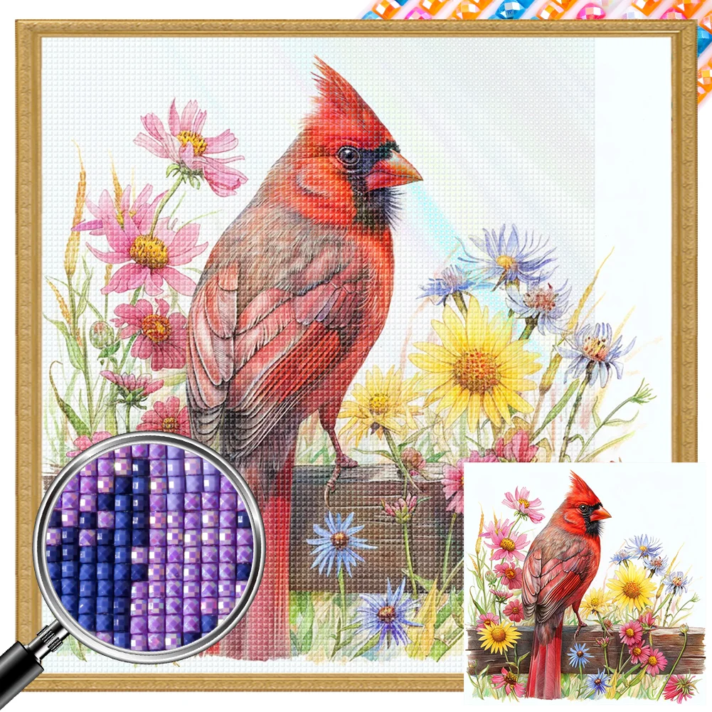 Partial AB Diamond Painting-5D Full Round Drill Flower Cardinal(Canvas|45*45cm)