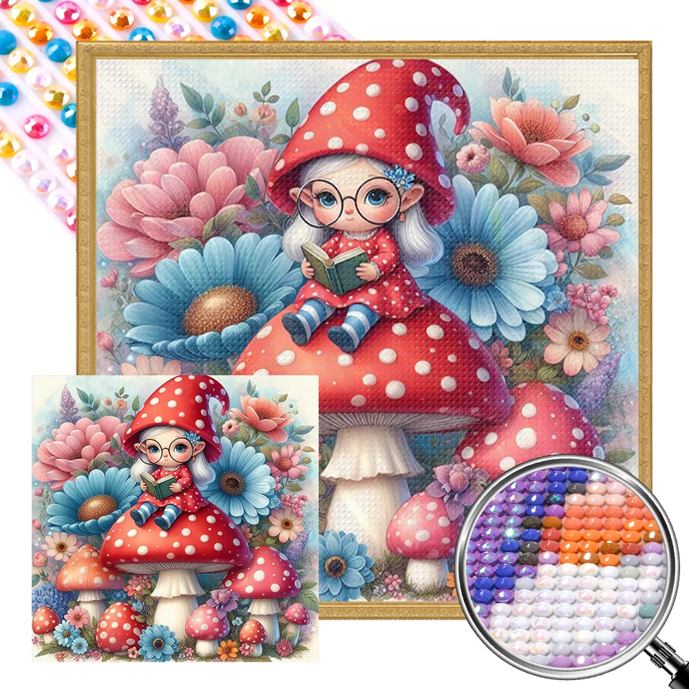 Partial AB Diamond Painting-5D Full Round Drill Mushroom Girl(Canvas|45*45cm)